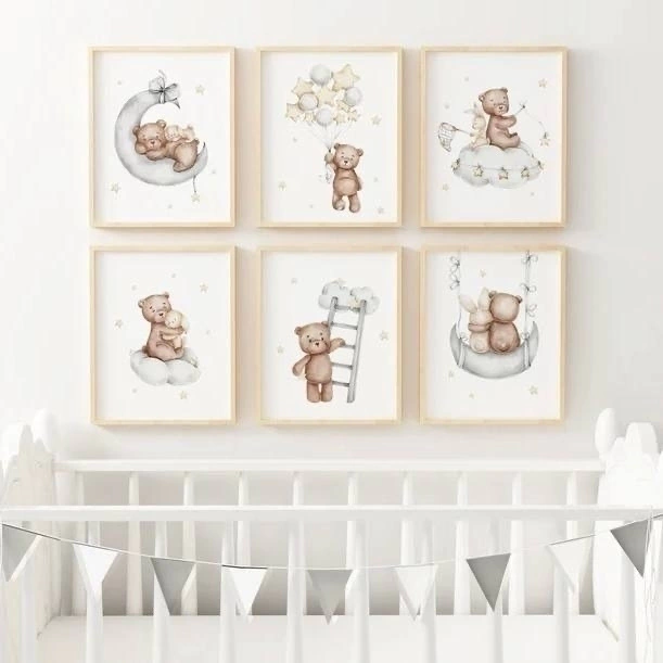 KIT DE QUADROS URSOS AQUARELA NUVENS