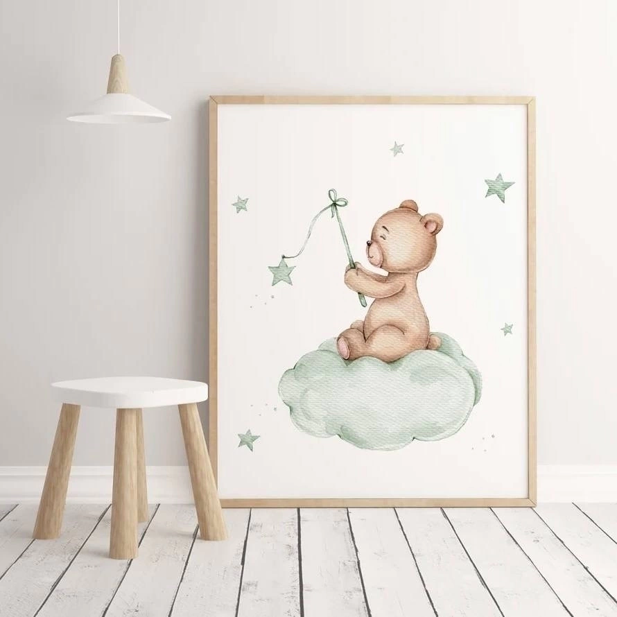 QUADRO UNITÁRIO URSO NA NUVEM COM DETALHE EM VERDE