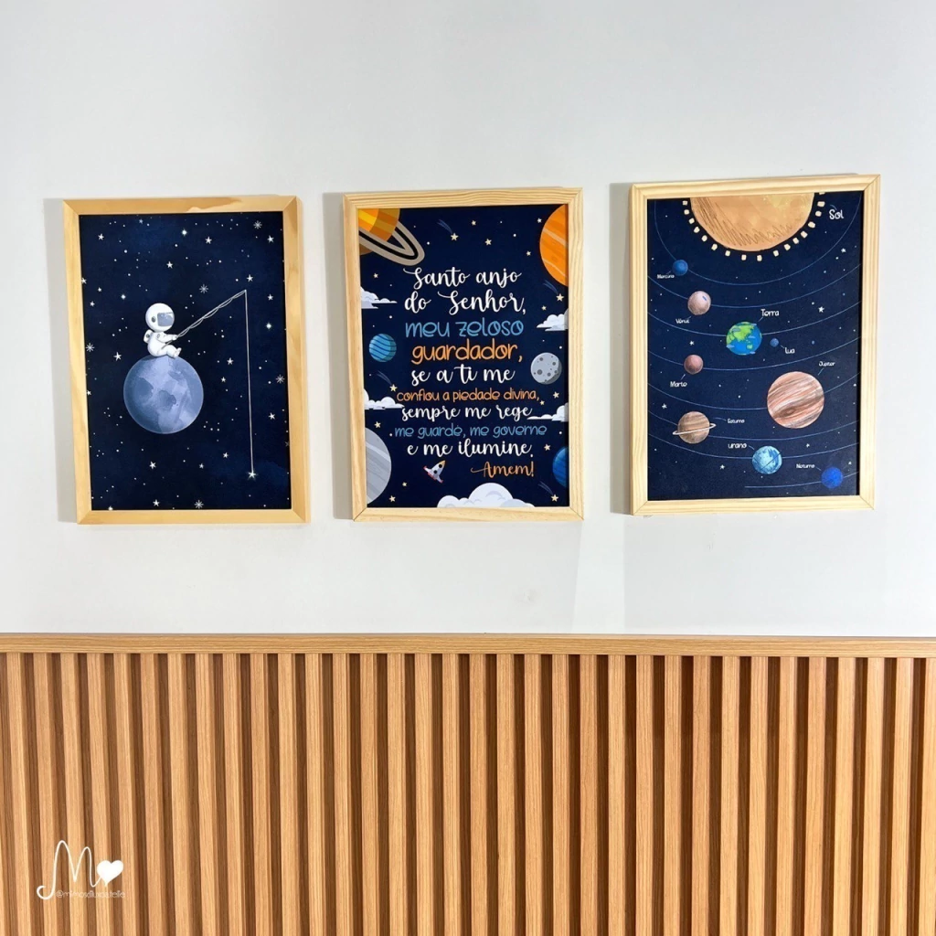 TRIO DE QUADROS ASTRONAUTA FUNDO ESCURO 03